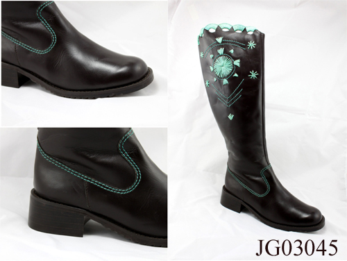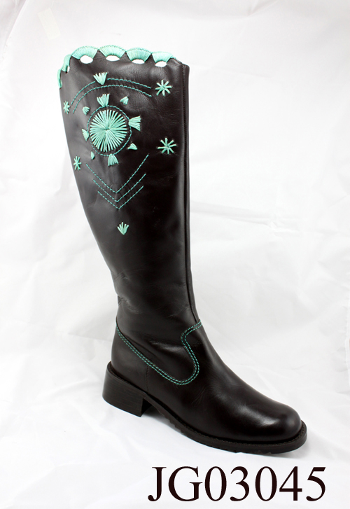 ??????? 本款女靴由牛皮制作而成,靴設(shè)計新穎,荷葉式的彩邊做靴筒加上正方式低跟,靴底柔軟,輕便舒適,方便著穿。