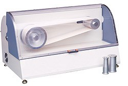 說 明: 非皮革之鞋底,粘貼或縫合在帆布帶表面,布帶再套于本機轉輪上,啟動轉輪,鞋底即受到彎折,彎折一定次數后,檢視鞋底受損和斷裂情形,以了解其耐彎折特性,布帶之旋轉是由本機大轉輪帶動,小轉輪有三種不同的直徑,供選擇替換,以取得不同曲率的彎折測試,以資比對。