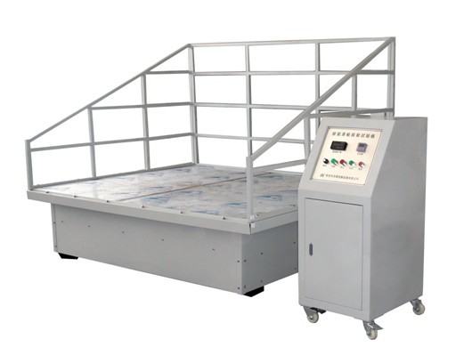 此設備是根據美國及歐洲運輸標準,并參照美國同類設備改進制造。利用偏心軸承在旋轉中產生橢圓形的運動軌跡來模擬汽車或輪船運輸過程中貨物產生的振動,碰撞。將測試平臺固定在偏心軸承上,當偏心軸承轉動時,測試平臺的整個平面就會產生橢圓形的上下前后運動,調整偏心軸隨轉動速度相當于調整汽車或輪船的行駛速度。