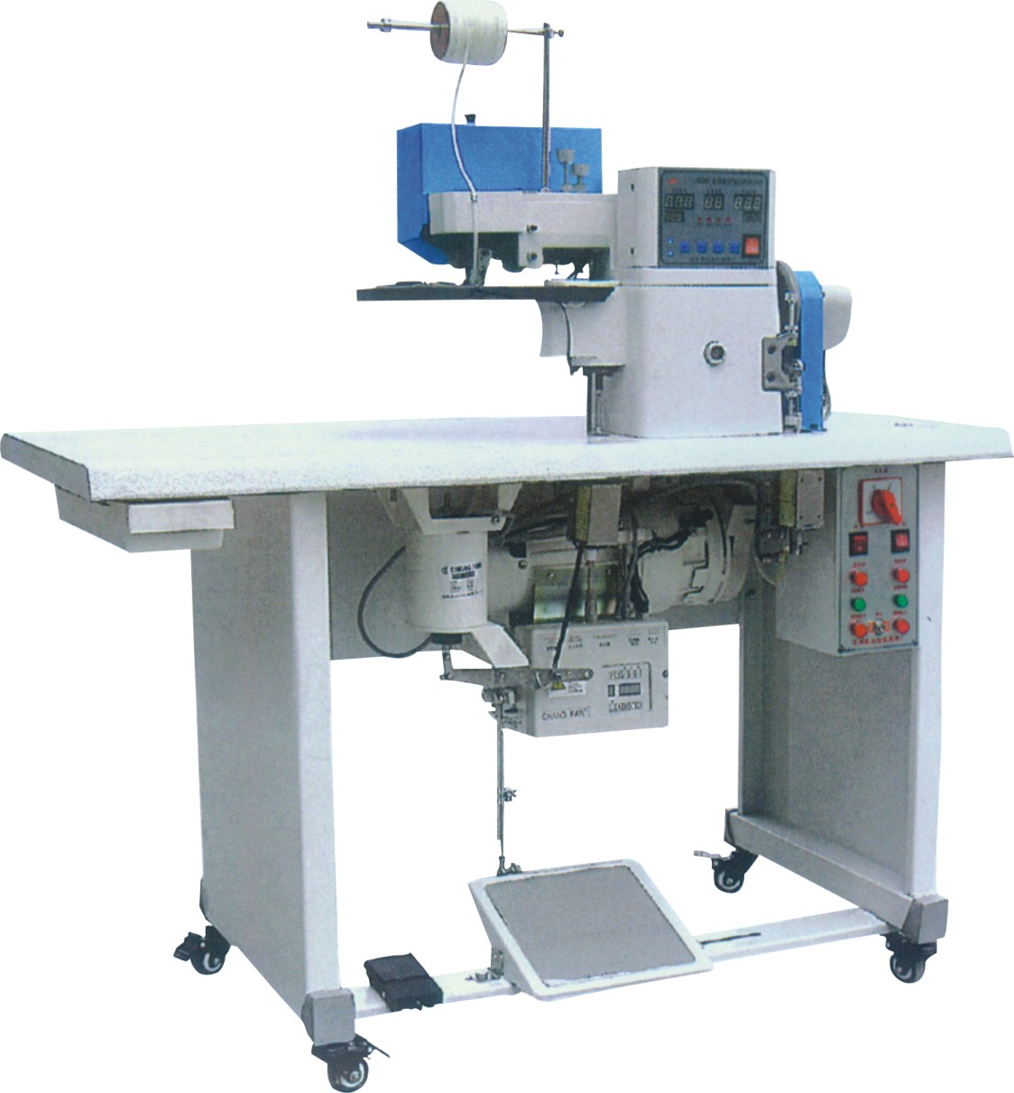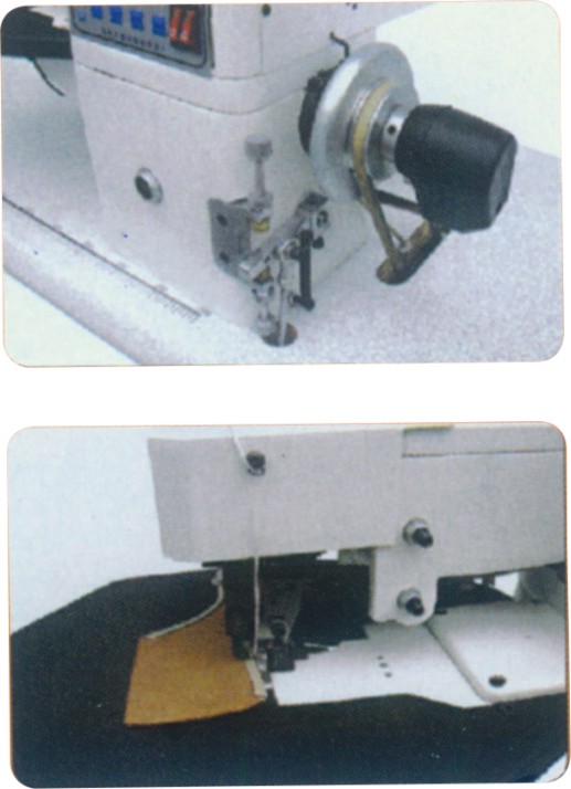 1:該機是自動電子上膠和鞋面折邊機之組合,皮革通過該機,自動上膠帶折邊同時進行,省去人工上膠, 提高效率。 2:該機采用熱溶, 通過按鈕調節熱膠溫度,出膠流量,調整方便,指示準確。 3:通過光敏電阻自動控制出膠,膠量穩定,準確。 4:該機具有自動打齒功能,拐彎折邊時自動慢速,可將加強帶一并折入.