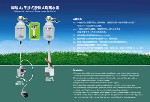 6. JW-302 is equipped with a adjustable pneumatic mixer, which can automatically mix the additives in the container to avoid the phenomenon of sedimentation and uneven moisture.