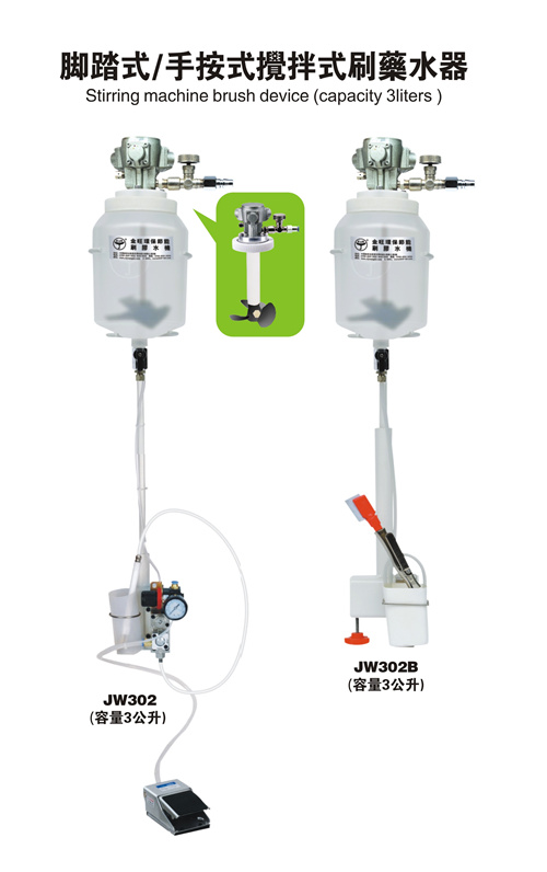 六、JW-302配備可調式氣動攪拌器,可將容器內添加物自動攪拌均勻,避免有沉澱及濃度不均勻的現象。