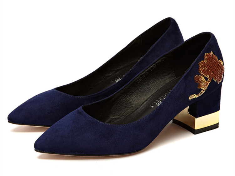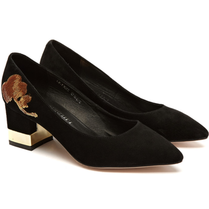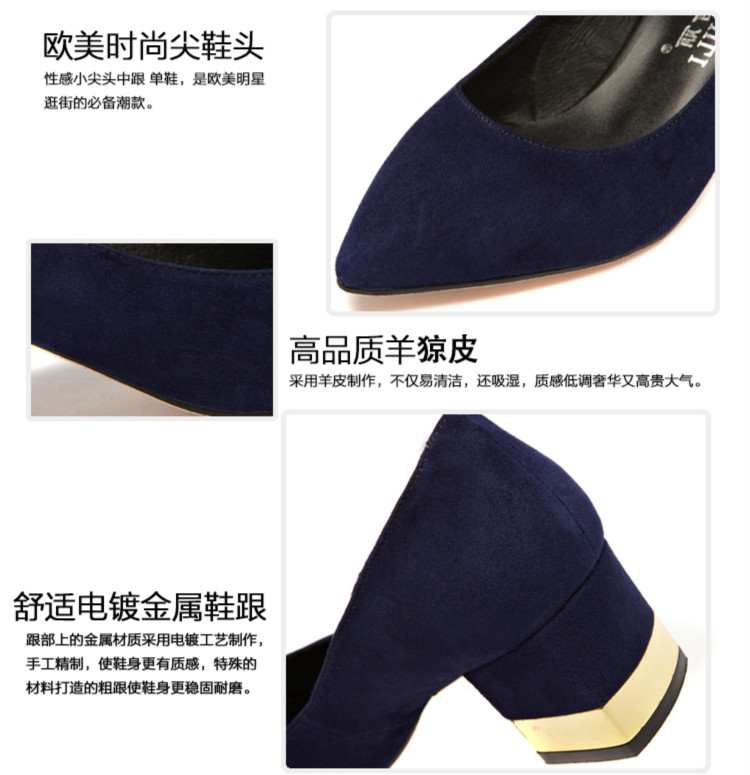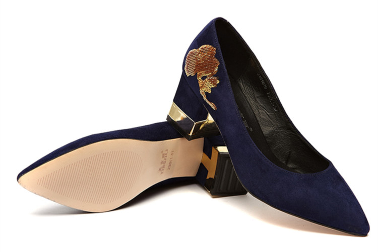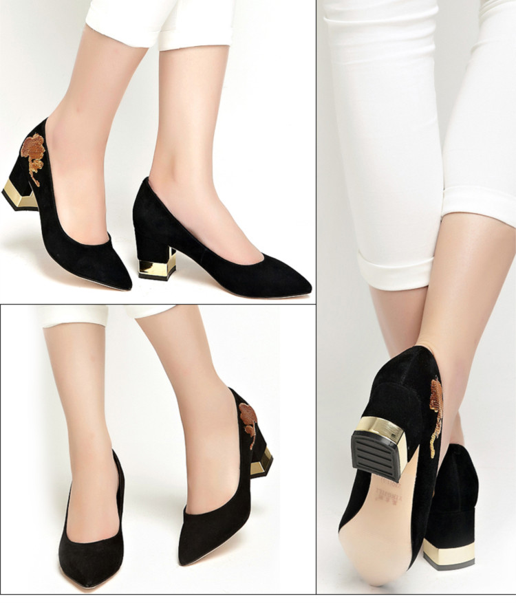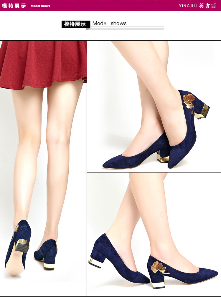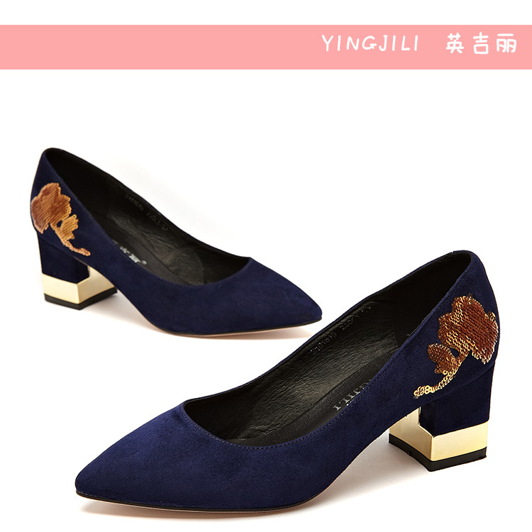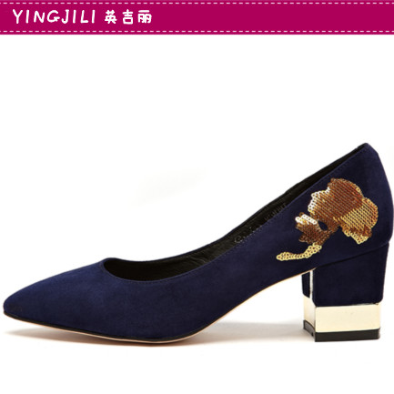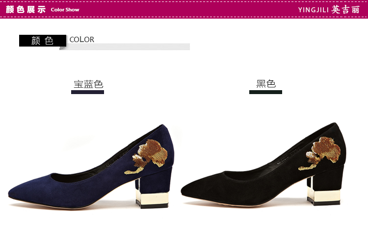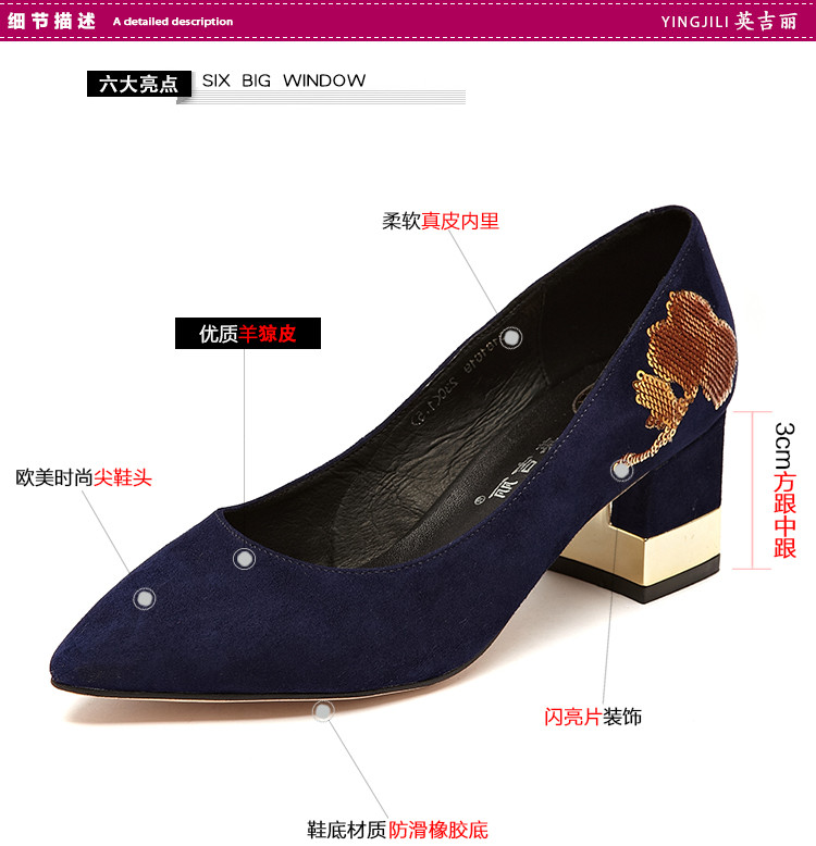 英吉麗磨砂皮法式閃亮片中粗跟鞋
