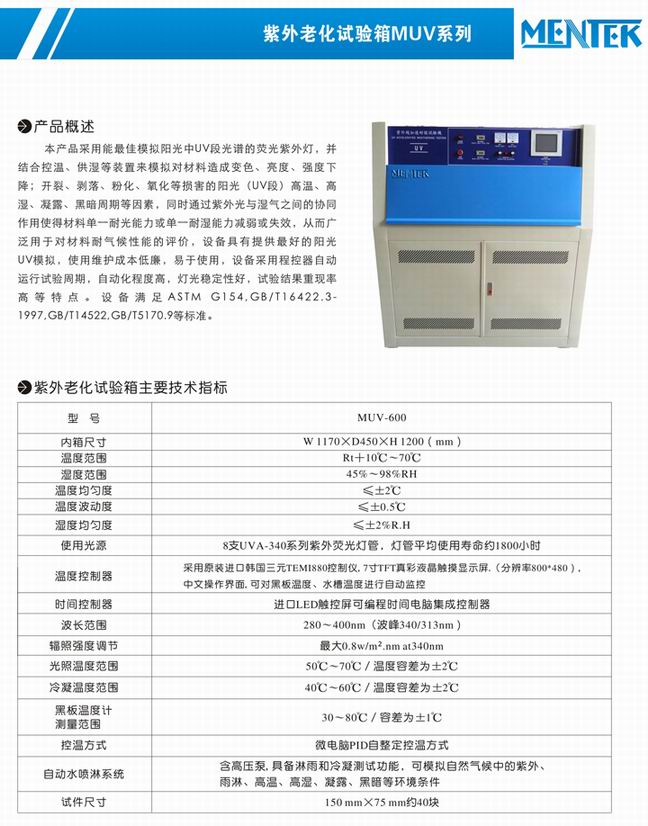 MSUN系列氙燈耐候試驗箱已成為耐光耐侯測試領域的普遍選擇,為相關行業的科研、產品開發、質量控制提供了充足的技術參考和實踐證明。本設備是以長弧氙燈(全太陽光譜)為光源、模擬和強化產品耐候性及加速老化的試驗設備,以快速獲得近似大氣老化的試驗結果,用來評價塑料、橡膠、油漆、涂料、油墨、紙張、藥品、食品、化妝品、汽車零部件、電子電工產品、紡織印染、建材等材料的耐侯性.