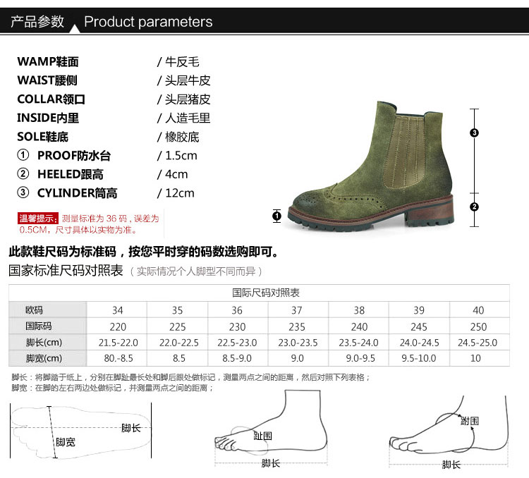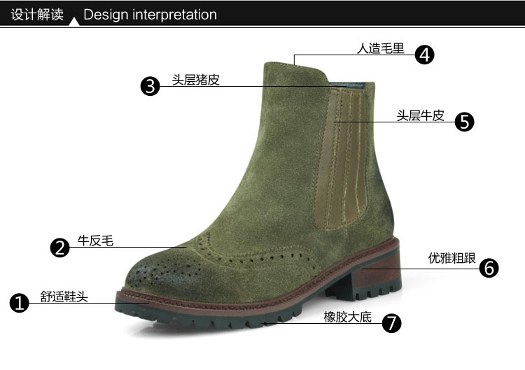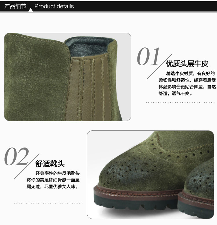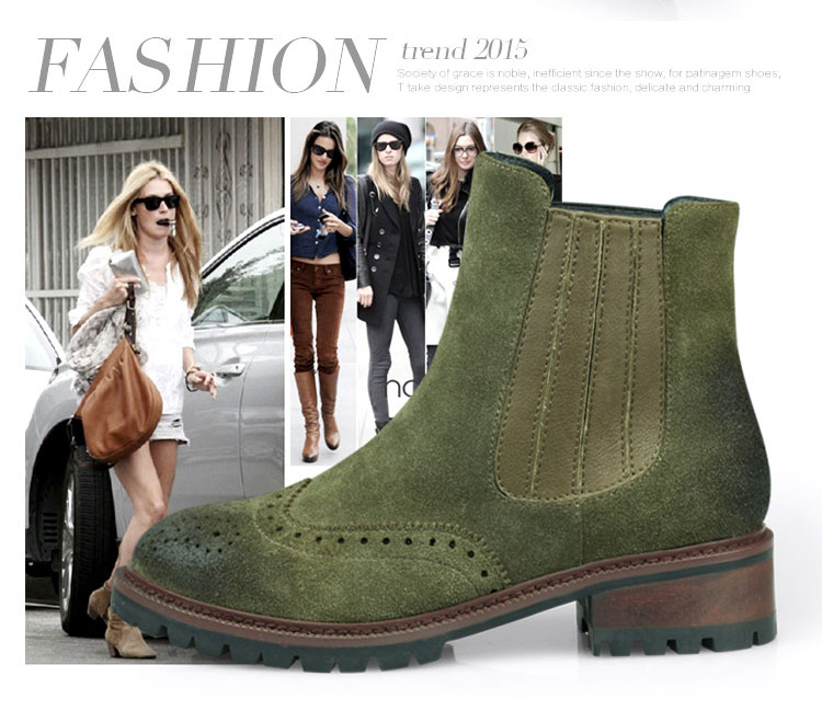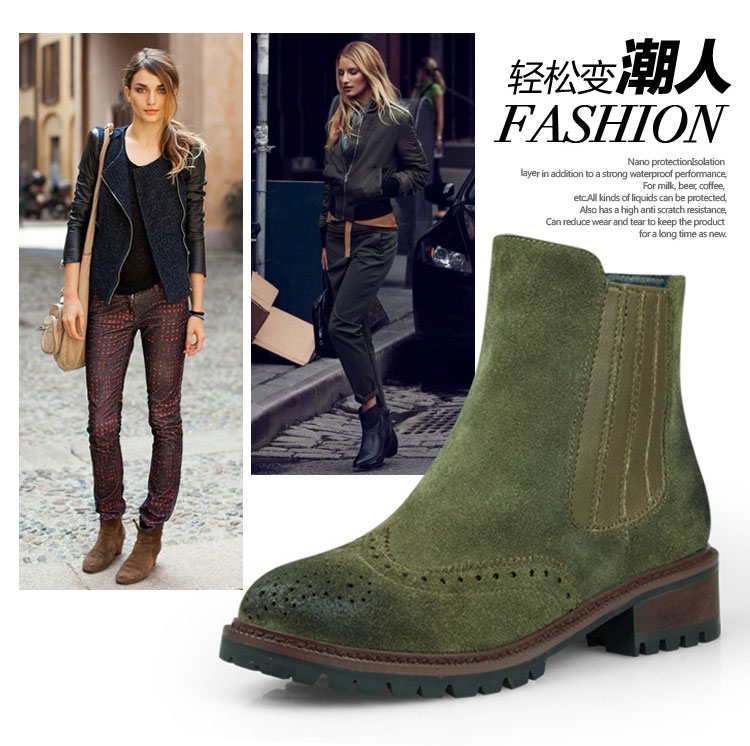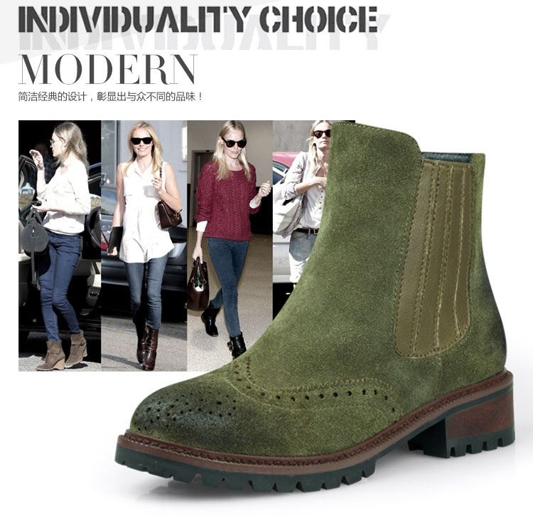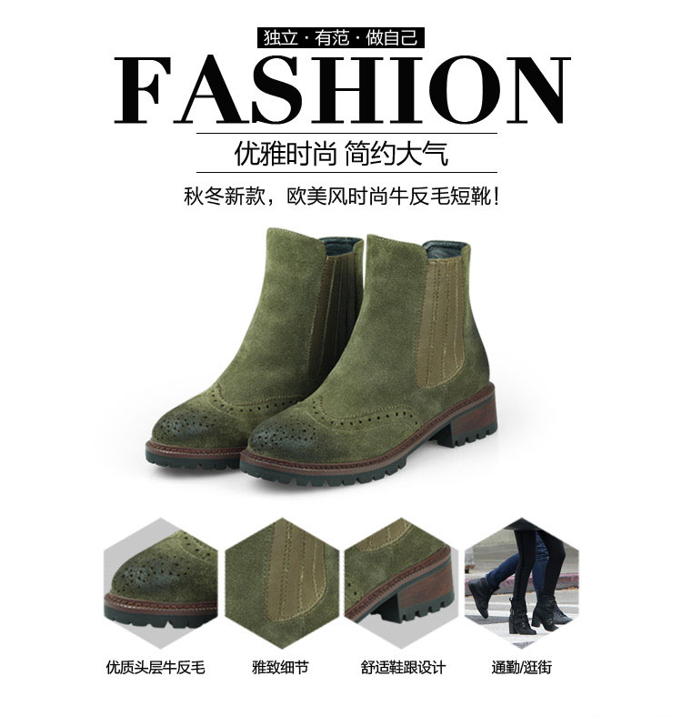 廠家直銷 2016秋冬新款 歐美時尚 短靴女 牛反毛短靴 布洛克靴子 真皮女靴