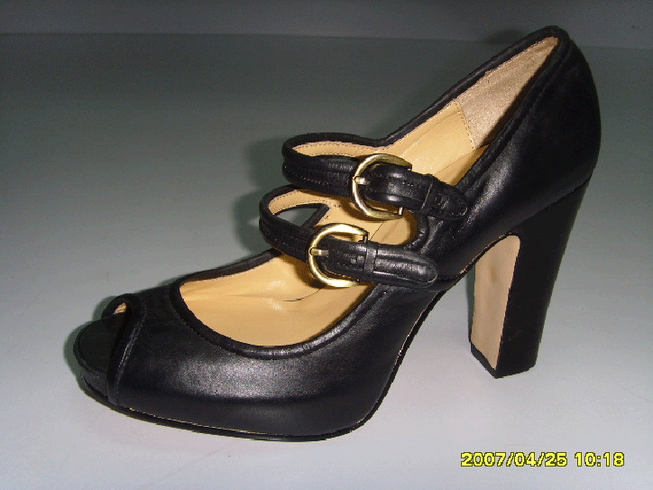 DESC ?CONCEAL PLATFORM PEEP TOE?WITH TWO BUCKLE STRAPS ACROSS THE INSTEP?PIPING DETAILS?SUPPLE LEATHER