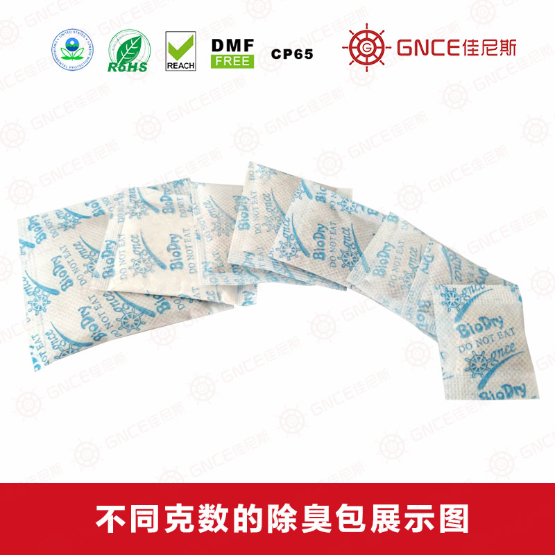 特點簡介:除臭包W-5-M+可吸收產品儲存空間濕氣、臭味分子,同時釋放除臭因子可中和或氧化空間中的臭味物質,如胺類、硫化氫、硫醇類等一些還原性的臭味物質。脫臭原料是采自天然的礦物和天然植物提取液。可吸收濕氣以免發霉引起的臭味、潮味,能吸附空間中的臭氣分子,慢慢釋放植物除臭因子反應臭氣分子,具有很好的靜態減濕和異味去除等功效。除臭包符合相關環保要求,經過相關Reach、Rohs、不含DMF等相關環保檢測認證。