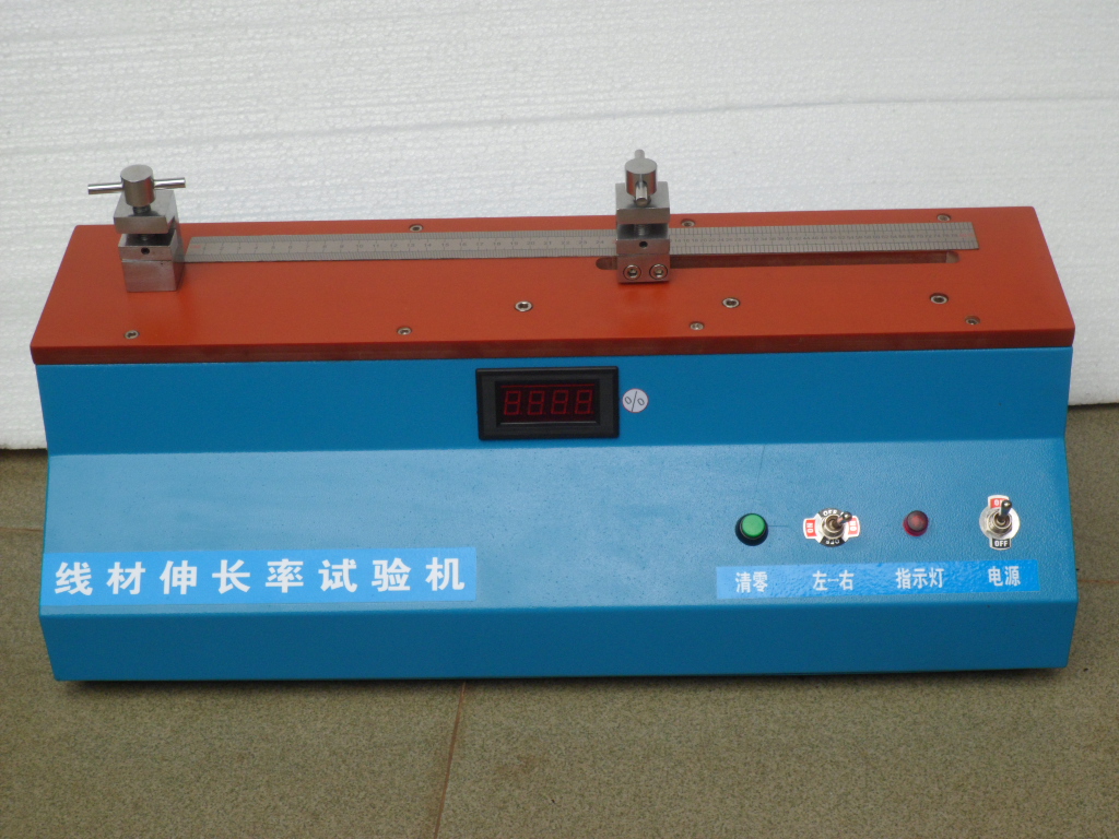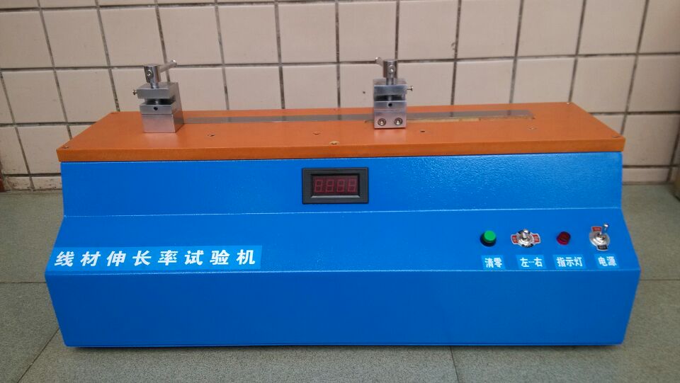 線材伸長率試驗機適合于銅、鋁包線各種線材及銅絲、鋁絲、鋁鎂合金絲、鐵絲各種金屬材料伸長率測試。本機采用高效率內循環絲桿和定速電機組成的機械傳動系統,帶動活動夾具以定速產生左右位移,使夾緊的試件在拉力作用下逐漸伸長直至拉斷,自動顯示試件的伸長率百分數。本機符合符合UL、CSA、GB、ASTM、VDE、IEC等試驗標準。