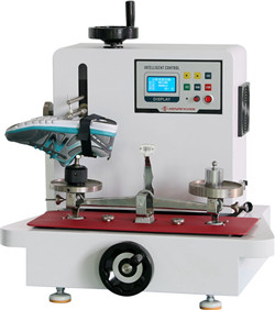 本機適用于檢驗成品鞋鞋底和成型底(片)的耐磨性能,其原理是將旋轉的磨輪垂直在試樣上以一定的負荷,一定的速度,一定時間對試驗進行磨耗試驗,測量試驗痕長度,具有斷電記憶功能。