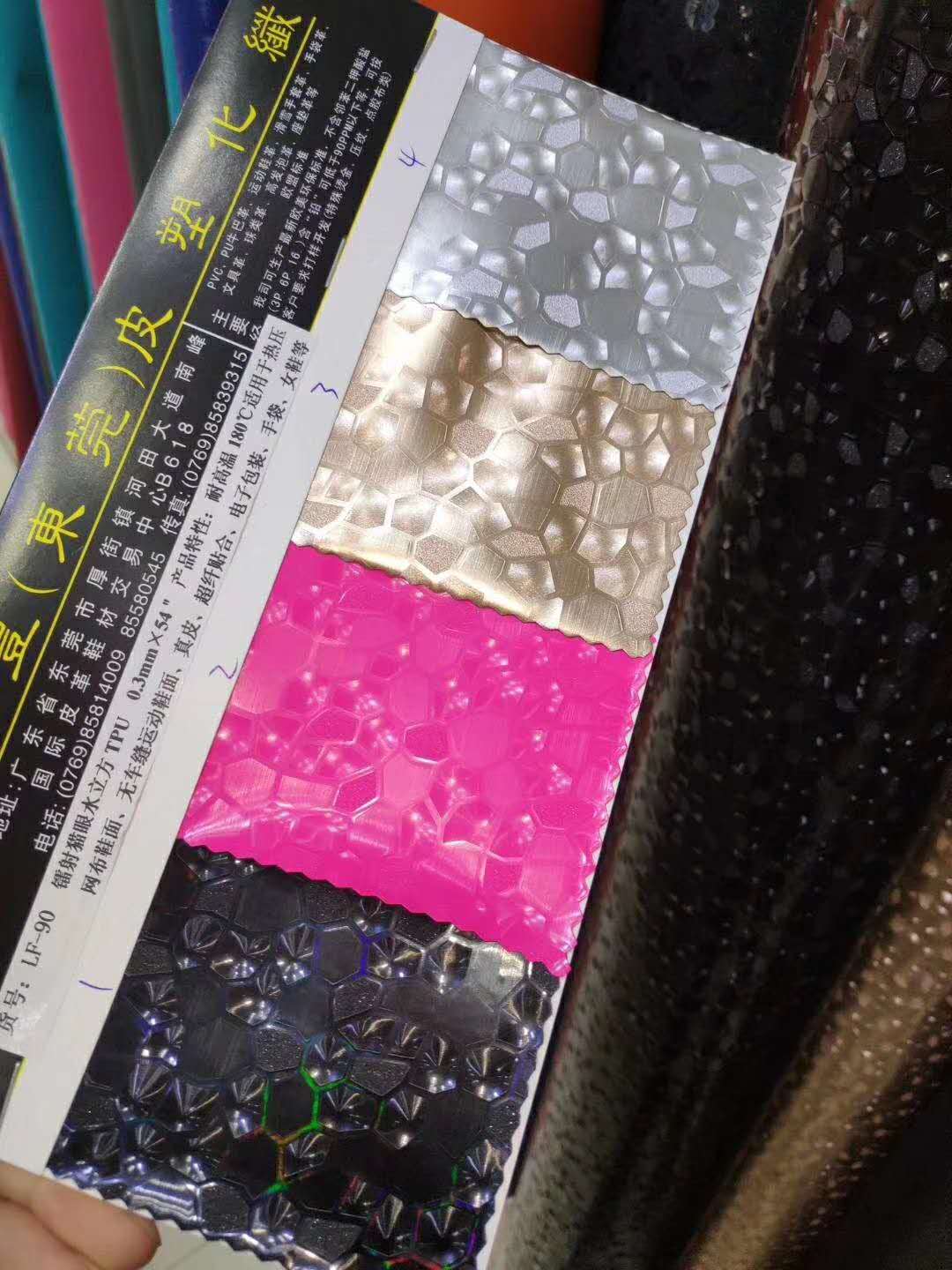 新光學鐳射貓眼水立方TPU(耐高溫180度)規格:0.3mmx54,適用于電子包裝、高低溫熱壓網布鞋面、服裝刻字膜,二層皮及超纖復合等,專供市場中盤商/復合廠,全部現貨!微信LF85814009