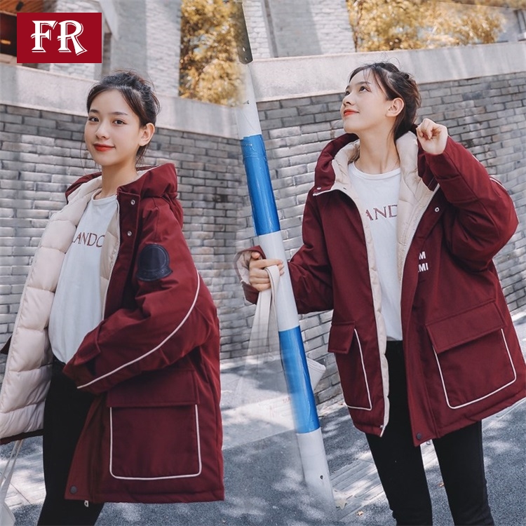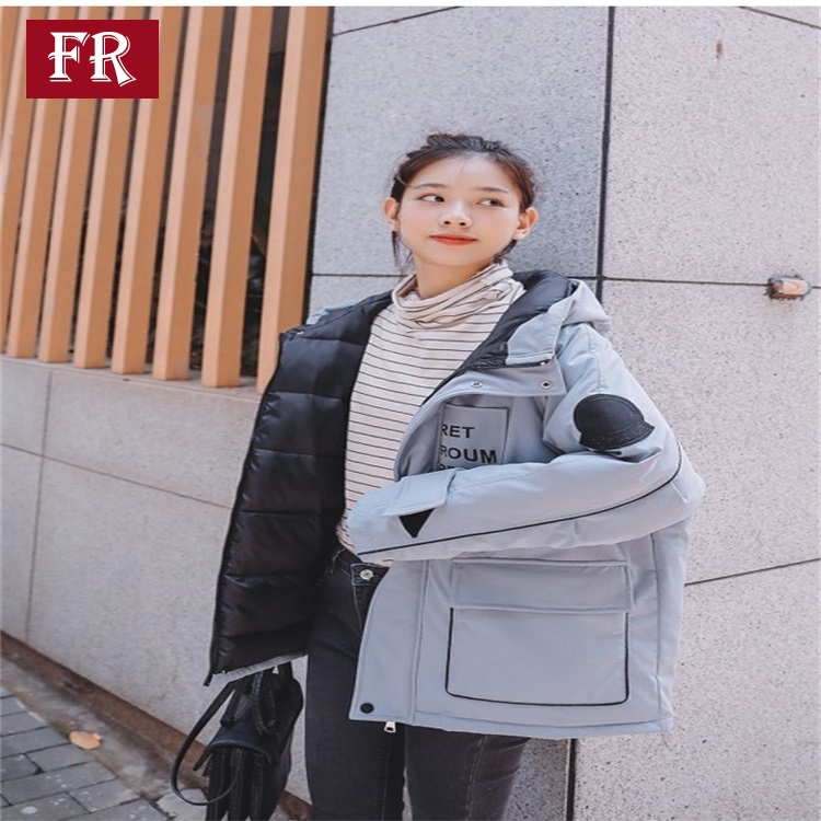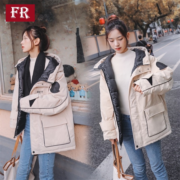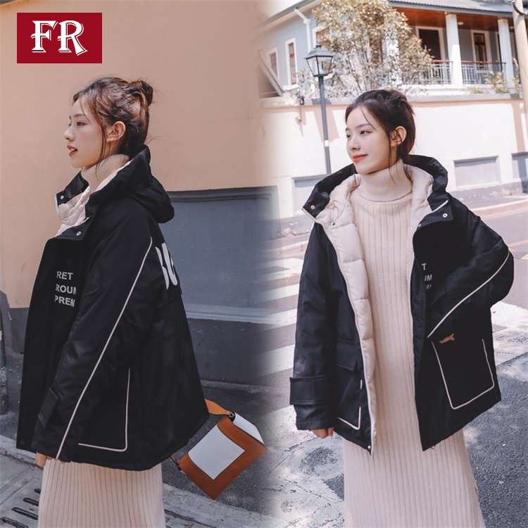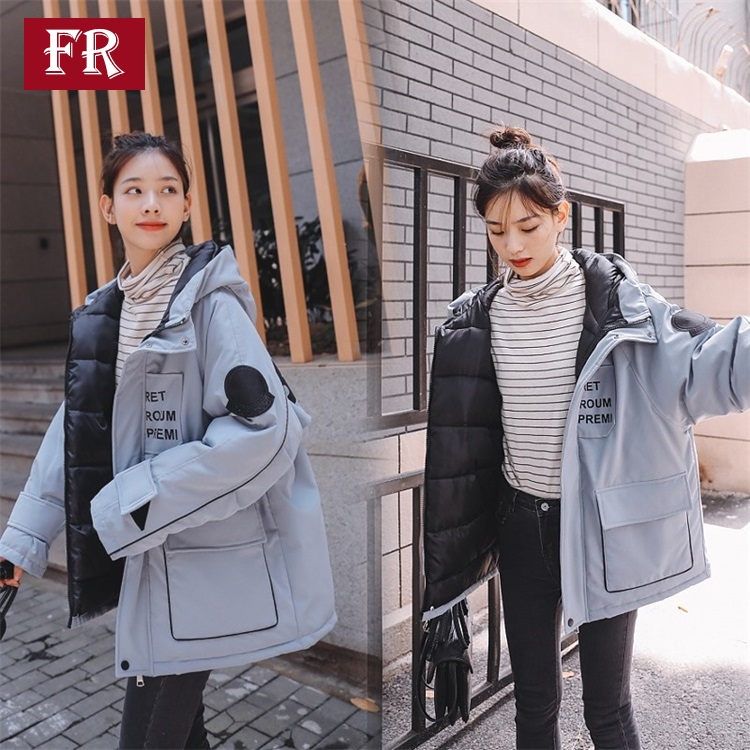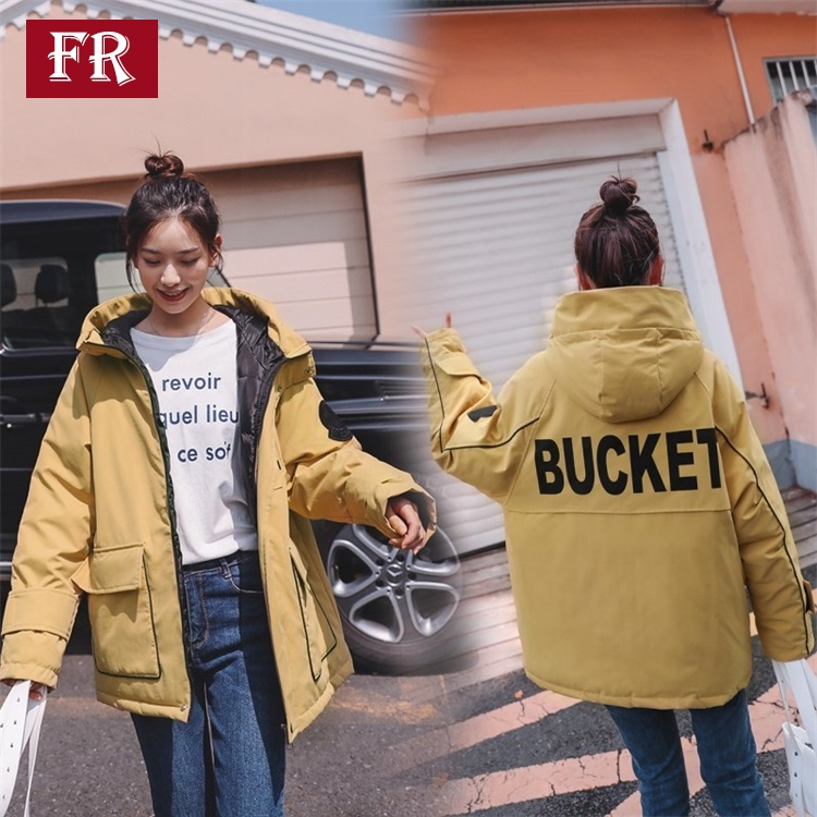 羽絨服女2019秋冬新款網紅休閑bf韓版ins工裝外套連帽棉服