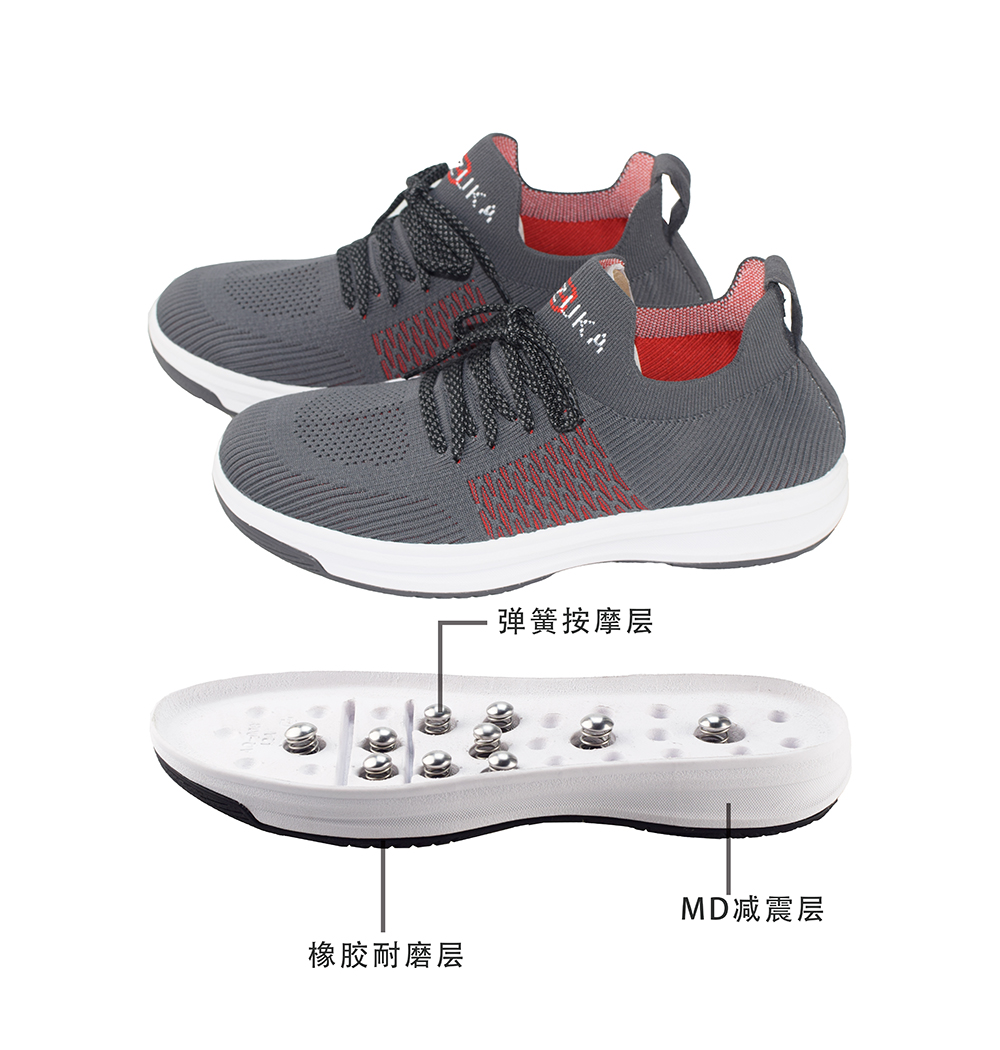 BZK004 | BEIZUKA第二代活力彈簧按摩鞋男款(灰紅)