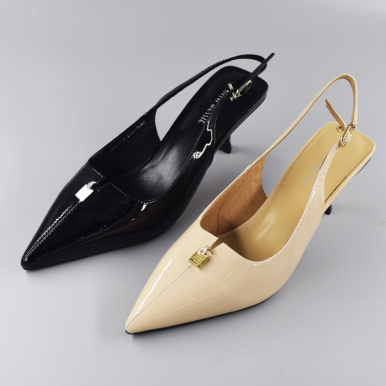 后空OL風真皮漆皮羊皮時尚尖頭細跟包頭涼鞋單鞋高跟鞋SE98331-8