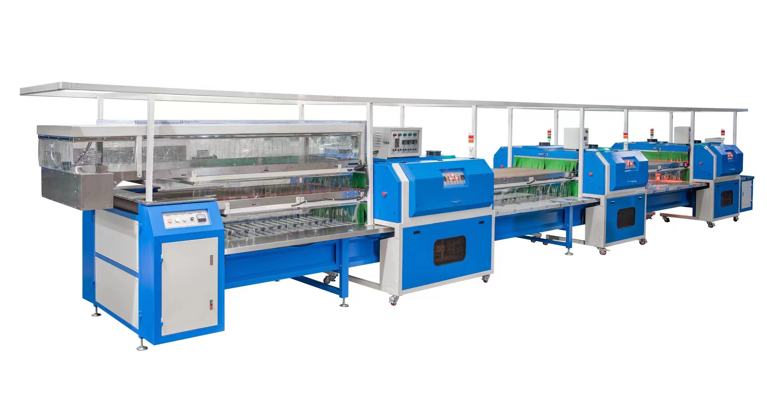 1.輸送機采用上下兩層,上面放大底,下面放鞋面,烘箱可依材質(zhì)不同來獨立控制與設(shè)定溫度,加熱快,效率高,大大節(jié)省了空間與電能。