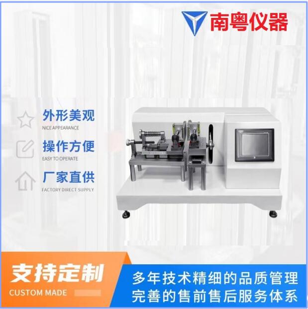 將試樣一端固定在左夾具,另一端固定在右夾具,以一定的行程及次數(shù),加于適當(dāng)之壓力,兩個(gè)試樣相互往覆彎折揉磨,經(jīng)一定次數(shù)后,評(píng)估試樣的損壞程度。