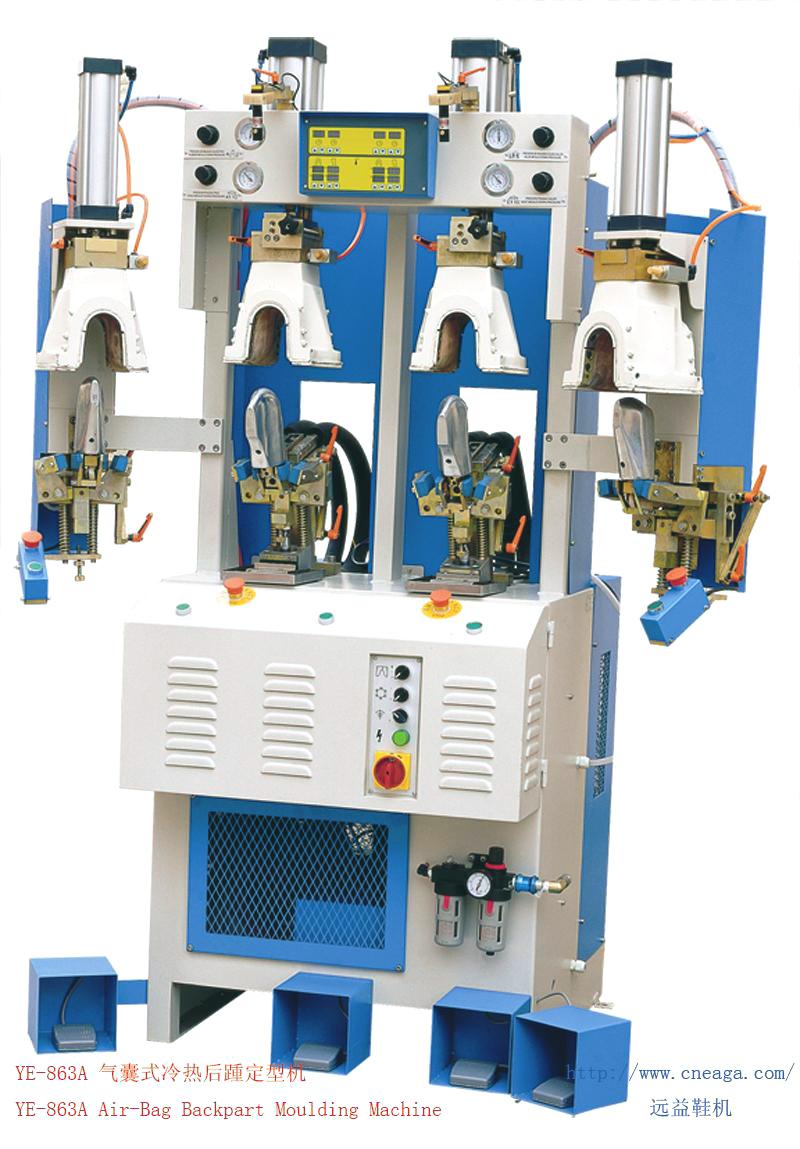 鞋機,遠益鞋機,鞋機十強,釘跟機,定型機,加硫機,冷凍機,中底機,片皮機,前后邦機,按摩機,裁斷機,激光機,壓底機,打粗機,YE-863A 氣囊式冷熱后踵定型機