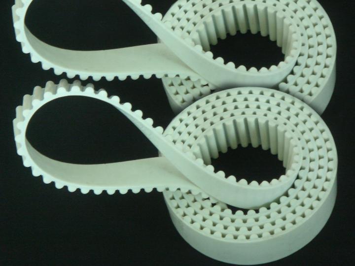 2、 白色聚氨脂(PU)夾鋼絲開口同步齒帶,主要用于往返式傳動,耐磨耐腐蝕,抗拉強度好。使用壽命長,寬度長度可以任意分切,最寬100米,最長100米/卷。各種規(guī)格聚氨脂夾鋼絲同步齒帶根據(jù)不同需求背面加不同厚度PU,主要起傳動輸送作用,抗拉強度大,傳動精度高,穩(wěn)定性好,耐油,低噪音,不會產(chǎn)生皮帶屑 ,適用于各種行業(yè)。