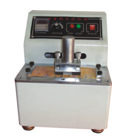 油墨脫色試驗機用於檢測印刷品油墨層之耐摩性。將干或濕的標準摩擦紙包於摩擦錘,以規定壓力、摩擦行程及速度往復摩擦試樣表面,以判定摩擦紙污染等級,以及試樣表面起毛或磨損程度。