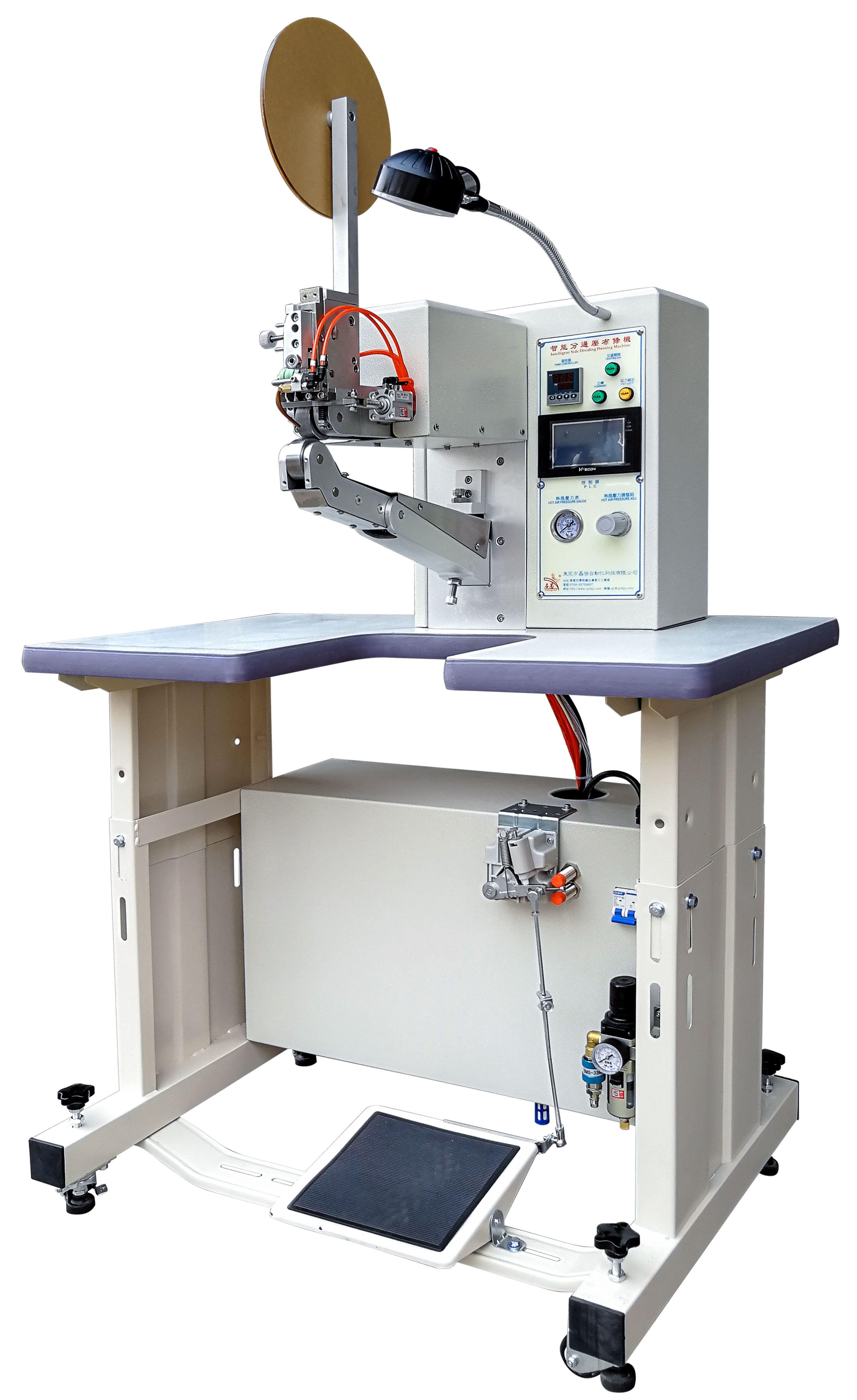 .獨特設計的曲臂同步送料結構,可滿足各種形狀、曲度等材料的滾壓。補強貼合等功能。
